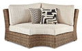 Sporting an easy-on-the-eyes look inspired by driftwood, this curved corner chair with cushion elevates the art of alfresco living. Beautiful and durable enough for indoor and outdoor use, the high-style/low-maintenance seating entices with plush, removable cushions wrapped in Nuvella® fabric that’s a breeze to keep clean.