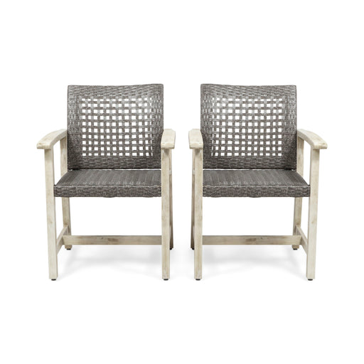 Noble HouseClassic and Cozy: These acacia wood dining chairs with PE rattan seating offer a classic and cozy look for any patio or backyard, enhancing your o...