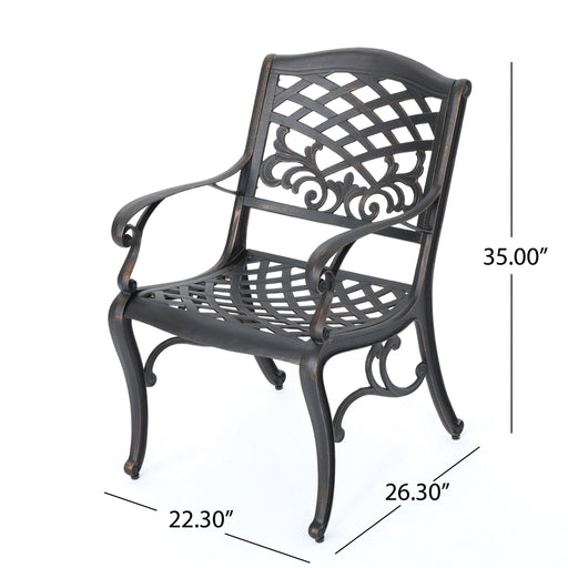 Original price $989.99Original price $989.99 - Original price $989.99Original price $989.99Current price $799.99$799.99 - $799.99Current price $799.99Luminea - Outdoor Aluminum Dining Chair With Scroll Design, Lattice Pattern And Cabriole Legs - Bronze