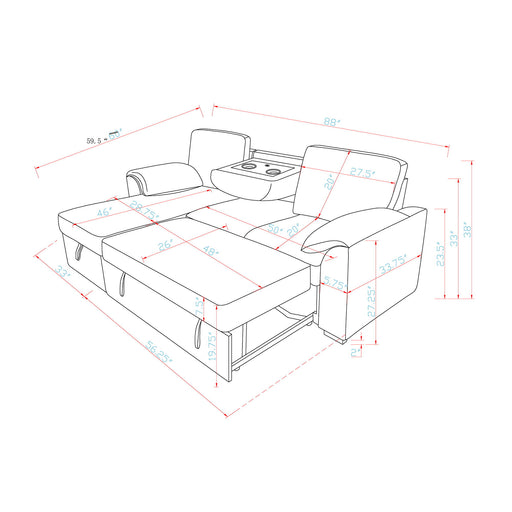 Rebecca - Sofa With Pull Out Bed, Storage Chaise, USB And Cup Holders - Dark Gray
