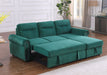 Ashton - Velvet Fabric Reversible Sleeper Sectional Sofa Chaise - Green
