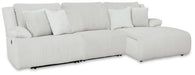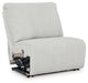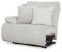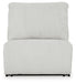 Details | Includes 3 pieces: left-arm facing recliner, armless recliner and right-arm facing press back chaise, "Left-arm" and "right-arm" describe the position of the arm when you face the piece, Chaise with press-back reclining motion, Recliners with pull tab reclining motion, Corner-blocked frame with metal reinforced seat, Attached cushions, High-quality foam cushions wrapped in poly fiber, Accent pillows included, Pillows with soft polyfill, Polyester upholstery | |