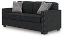 Details Corner-blocked frame, Attached back and loose seat cushions, High-quality foam cushions wrapped in poly fiber, Throw pillows included, Pillows with soft polyfill, Polyester upholstery, Exposed feet with faux wood finish, Ambient red, white and blue LED lighting; touch button control in arm, Platform foundation system resists sagging 3x better than spring system after 20,000 testing cycles by providing more even support, Smooth platform foundation maintains tight, wrinkle-free look without dips or sags that can occur over time with sinuous spring foundations