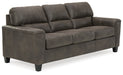 If you love the cool look of leather but long for the warm feel of fabric, you can take comfort in this queen sofa sleeper. Wrapped in a fabulous faux leather with a weathered hue and hint of pebbly texture to resemble the real deal, this decidedly modern sofa proves less is more. Elements include angled side profiling and track armrests wrapped with a layer of pillowy softness for that little something extra. Prominent jumbo stitching and clean-lined divided back styling lend fashion-forward flair. Rest assured, the queen memory foam mattress comfortably accommodates overnight guests.