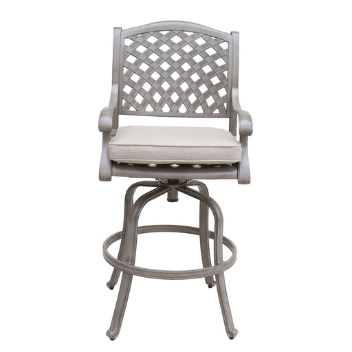 Noble HouseDurable Construction: Crafted from powder-coated cast aluminum, this barstool is designed to withstand outdoor weather while maintaining its prist...