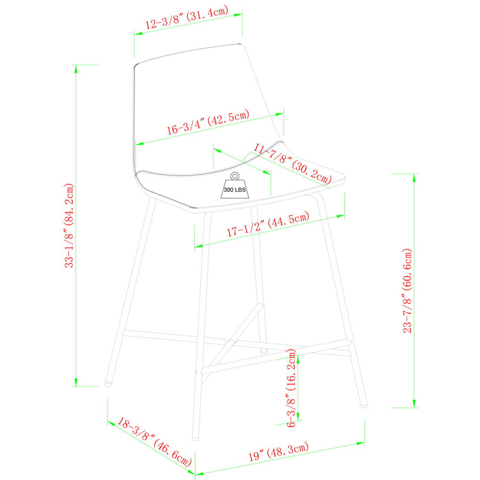 Modern Upholstered Counter Stool With Metal X Base (Set of 2) - Black