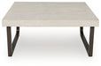 Details | Includes coffee table and end table, Made with hardwood solids, decorative melamine laminate and MDF substrate, Legs finished in dark espresso brown color with dark wood grain contrast, Durable light gray faux cement laminate on tops, Assembly required | |