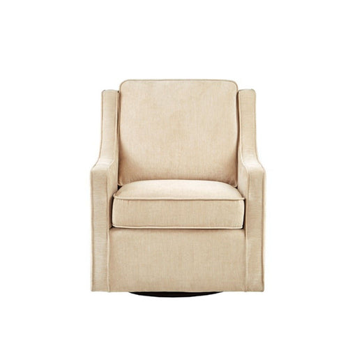 JLADesign: Swivel chair with a barrel back design for modern elegance. Fabric: Cream shearling fabric offers a soft, luxurious feel. Cushion: Removab...