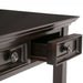 - Features two side drawers with metal drawer glides and flip down pull-out keyboard tray