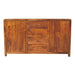 - Features: 100% solid mango wood,rich chestnut finish,smooth corners,sideboard,4 compact drawers,2 doors,brass knobs,assembled