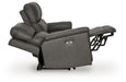 Details | Dual-sided recliner; middle seat remains stationary, One-touch power control with adjustable positions, Easy View™ adjustable headrest and zero-draw USB-A and USB-C ports, Zero-draw technology only consumes power when the USB receptacle is in use, Zero-gravity mechanism allows optimum reclining comfort with infinite reclining positions at the touch of a button, Corner-blocked frame with metal reinforced seat; attached back and seat cushions, High-quality foam cushions wrapped in poly fiber, 100% top grain leather covers inside areas such as the back, seat and arm cushions; skillfully matched faux leather covers the remaining areas, Due to its natural origin, real leather can show individual characteristics such as healed scars, growth marks, grain variation and shade variation, Natural variations make each hide unique and do not detract from the wearing qualities of leather, Zero wall recliner design requires minimal space between wall and chair back, Zero gap mechanism maintains consistent lower back and lumbar support throughout every stage of reclining for the ultimate relaxation experience, Power cord included; UL Listed | |