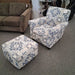 Blue & White Chair w/ Ottoman