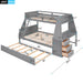 Twin Over Full Bunk Bed With Trundle And Built In Desk, 3 Storage Drawers And Shelf - Gray