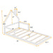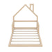 Twin Size Floor Bed With House Shaped Headboard - Natural