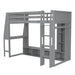Full Size Gaming Loft Bed & Desk, Multi Storage Shelves, LED Lighting, And Hanging Clothes Rack - Gray