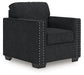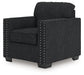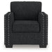 This stunning chair leaves a lasting impression. Its cozy cushions, chic coal-colored upholstery and striking nailhead trim are a perfect blend of comfort and contemporary design. And here’s the showstopper—ambient red, white and blue LED lighting along the chair's base. The look is simply wow.