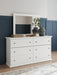 | Details | B139B47: Includes panel headboard/footboard and rails, Made with engineered wood (MDF/particleboard/plywood) and decorative laminate for the right balance of affordability and durability, Replicated solid white paint, Decorative laminate replicates natural or man-made material surfaces with consistent color, pattern and texture, Foundation/box spring required, sold separately, Mattress available, sold separately, Assembly required, B139B40: Includes dresser and mirror, Made of engineered wood (MDF/particleboard), Knobs with pewter-tone finish, Scalloped moulding, 6 smooth-operating drawers, Includes tipover restraint device, Mirror attaches to back of dresser; can also be mounted on wall horizontally or vertically, Safety is a top priority, clothing storage units are designed to meet the most current standard for stability, ASTM F 2057 (ASTM International), Drawers extend out to accommodate maximum access to drawer interior while maintaining safety, B139-46: Made of engineered wood (MDF/particleboard), Pewter-tone knobs, Scalloped moulding, 5 smooth-operating drawers, Small Space Solution, Includes tipover restraint device, Safety is a top priority, clothing storage units are designed to meet the most current standard for stability, ASTM F 2057 (ASTM International), Drawers extend out to accommodate maximum access to drawer interior while maintaining safety, | |
