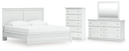 Bostwick Shoals King Panel Bed with Mirrored Dresser and Chest