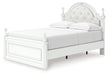 Fit for a princess. This full upholstered panel storage bed’s crisp matte white finish pairs with charming ornate beading details and sumptuous button-tufted upholstery—perfect for your girly girl. Spacious storage drawers neatly tuck away bedroom essentials, while decorative ball tops and multicolored LED lighting in the headboard are the crowning touches to make your little one feel like royalty.