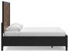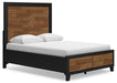 Experience the captivating allure of this queen panel storage bed, an effortless blend of casual and refined aesthetics. Its two-tone finish combines satin black with a rich brown wood tone for a modern, relaxed vibe that you'll love waking up to. Perfectly suited for your contemporary home, it offers two spacious drawers with plenty of room to tuck away your wardrobe and spare bed linens.