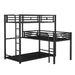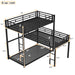 L-Shaped Triple Twin Size Bunk Bed, Industrial Design With Integrated Ladder And Full Length Guardrails - Black