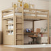 Full Size Loft Bed With Built In Wardrobe, Desk, Shelves, And Drawers - Walnut