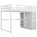 Full Size Loft Bed With Built In Wardrobe, Storage Shelves, And LED Light - White