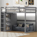 Full Size Loft Bed With Built In Wardrobe, Storage Shelves, And LED Light - Gray