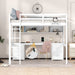 Full Size Loft Bed With Built In Desk, Storage Cabinets, Drawers, Charging Station, And Bedside Tray - White