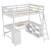 Full Size Loft Bed With U-Shaped Desk, Drawers, And Storage Shelves - White