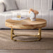 Round Coffee Table With Carving Pattern - Natural / Gold