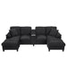 U-Shaped Sectional Sofa, Hidden Storage Ottomans, USB Ports, And Cup Holders - Black