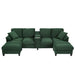 U-Shaped Sectional Sofa, Hidden Storage Ottomans, USB Ports, And Cup Holders - Green