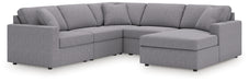 Details | Includes 5 modular pieces: left-arm facing corner chaise, 2 armless chairs, wedge and right-arm facing corner chair, "Left-arm" and "right-arm" describe the position of the arm when you face the piece, Modular pieces can float anywhere; sides are finished (with no connectors), Corner-blocked frame; reversible seat and back cushions; high-quality foam cushions wrapped in poly fiber, Throw pillows included; soft polyfill, Polyester upholstery, Next-Gen Nuvella™ is a family-friendly fabric that is soft, easy to clean, stain-resistant and durable, Easy-to-remove zippered covers for machine washing, Clean fabric with mild soap and water, let air dry; for stubborn stains, use a solution of 4 oz. bleach to 28 oz. water, Non-skid legs, Platform foundation system resists sagging 3x better than spring system after 20,000 testing cycles by providing more even support, Smooth platform foundation maintains tight, wrinkle-free look without dips or sags that can occur over time with sinuous spring foundations | |