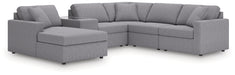 Details | Includes 6 modular pieces: left-arm facing corner chaise, 2 armless chairs, console with storage, wedge and right-arm facing corner chair, "Left-arm" and "right-arm" describe the position of the arm when you face the piece, Modular pieces can float anywhere; sides are finished (with no connectors), Corner-blocked frame, Loose reversible seat and back cushions; high-quality foam cushions wrapped in poly fiber, Throw pillows included; soft polyfill, Polyester upholstery, Next-Gen Nuvella™ is a family-friendly fabric that is soft, easy to clean, stain-resistant and durable; easy-to-remove zippered covers for machine washing, Clean fabric with mild soap and water, let air dry; for stubborn stains, use a solution of 4 oz. bleach to 28 oz. water, Non-skid legs, Console with removable plexiglass top; pull-out drawer for storage, Platform foundation system resists sagging 3x better than spring system after 20,000 testing cycles by providing more even support, Smooth platform foundation maintains tight, wrinkle-free look without dips or sags that can occur over time with sinuous spring foundations | |