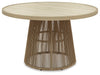 Whether it's decking out your deck or making a splash by the pool, this outdoor dining table is all about easy-breezy outdoor living. Its base features a nicely neutral rope wrap over a sturdy, rust-resistant aluminum frame that’s sure to weather the seasons beautifully. A sintered stone top enhances the table’s beauty and robustness.