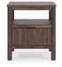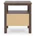 Details | Made with engineered wood (MDF/particleboard/plywood) and decorative laminate for the right balance of affordability and durability, Rich brown finish over replicated walnut wood grain with authentic touch, Decorative laminate replicates natural or man-made material surfaces with consistent color, pattern and texture, Black drawer pull, 1 smooth-operating drawer, Drawer interior lined with a faux linen laminate for a clean, finished look, Open shelf, Ambient lighting under top, USB-A and USB-C charging ports, Power cord included; UL Listed, Minor assembly required | |