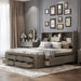 King Size Platform Bed With Storage Headboard And 8 Drawers - Gray