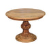 - Round Turned Dining Table - Create an elegant dining experience with this Round Turned Dining Table. Drawing inspiration from a classic French design it combines graceful curves with warm wood tones. Crafted from solid mango wood with an oak-ish finish this round table is the perfect piece for any dining room or kitchen. Every piece of furniture is individually handcrafted and includes swing care tickets explaining the cautions and aftercare instructions.