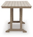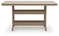 This outdoor counter height dining table is the perfect companion for alfresco living. Its contemporary neutral design creates an effortlessly chic focal point for any deck or patio. Built with a smart slatted construction, it sheds rainwater while delivering exceptional durability that stands up to the elements.