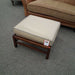 Taupe Leather & Wood Ottoman