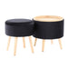 Tray - Contemporary Storage Ottoman With Matching Stool - Black / Natural