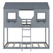 Twin Over Twin Bunk Bed With Roof, Window, Guardrail, Ladder - Gray