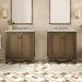 • Seamless Cohesive Vintage Charm: Matching 30-inch vanities with identical antique knobs and weathered finish create a unified retro look when combined.